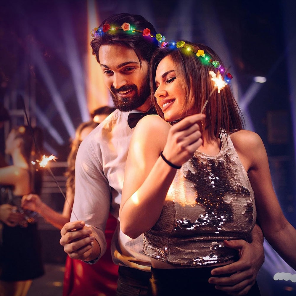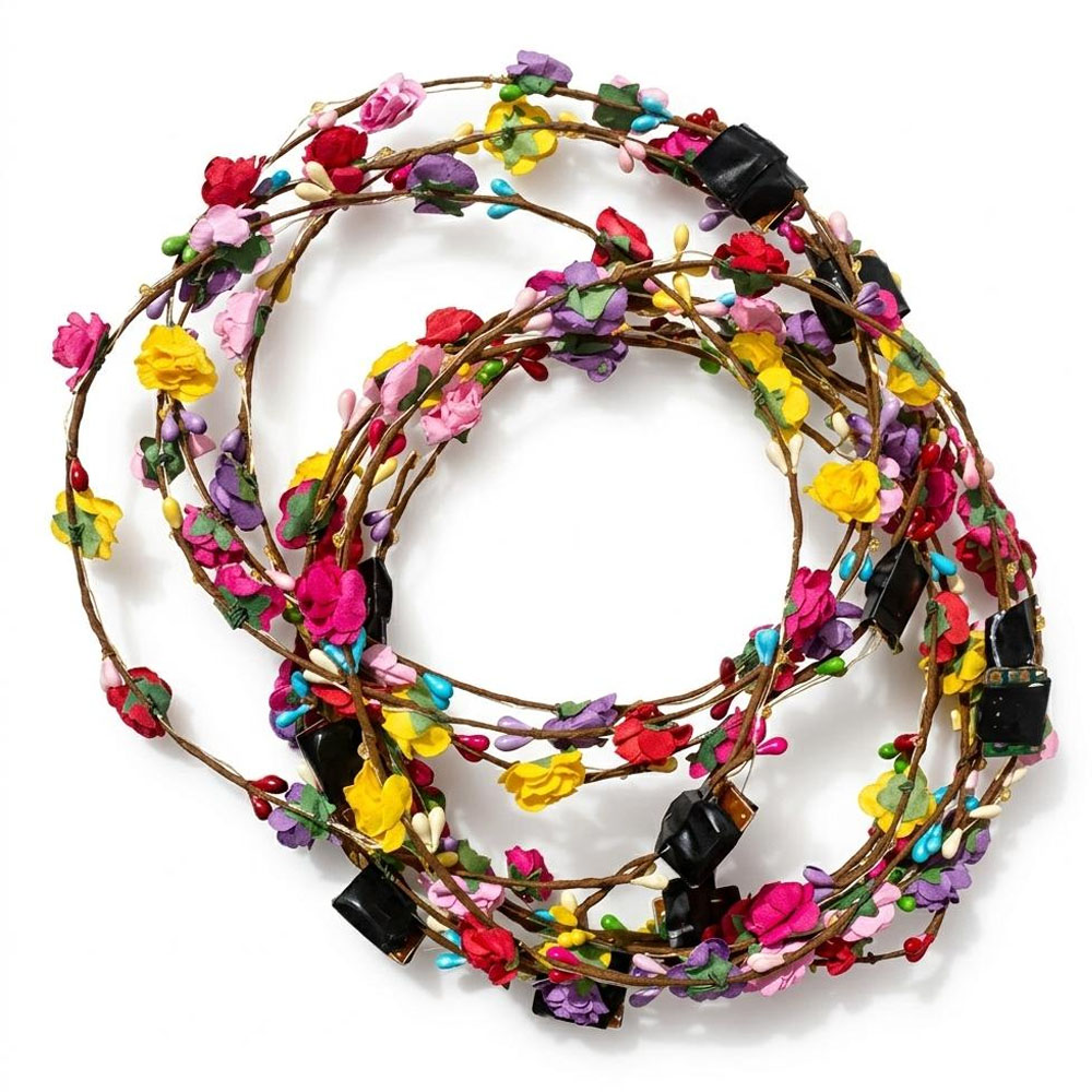 The soft and flexible wire connects each flower steadily above the circle to form a complete luminous wreath. If several received garlands are loose, you can wrap the wire around it a few times.
