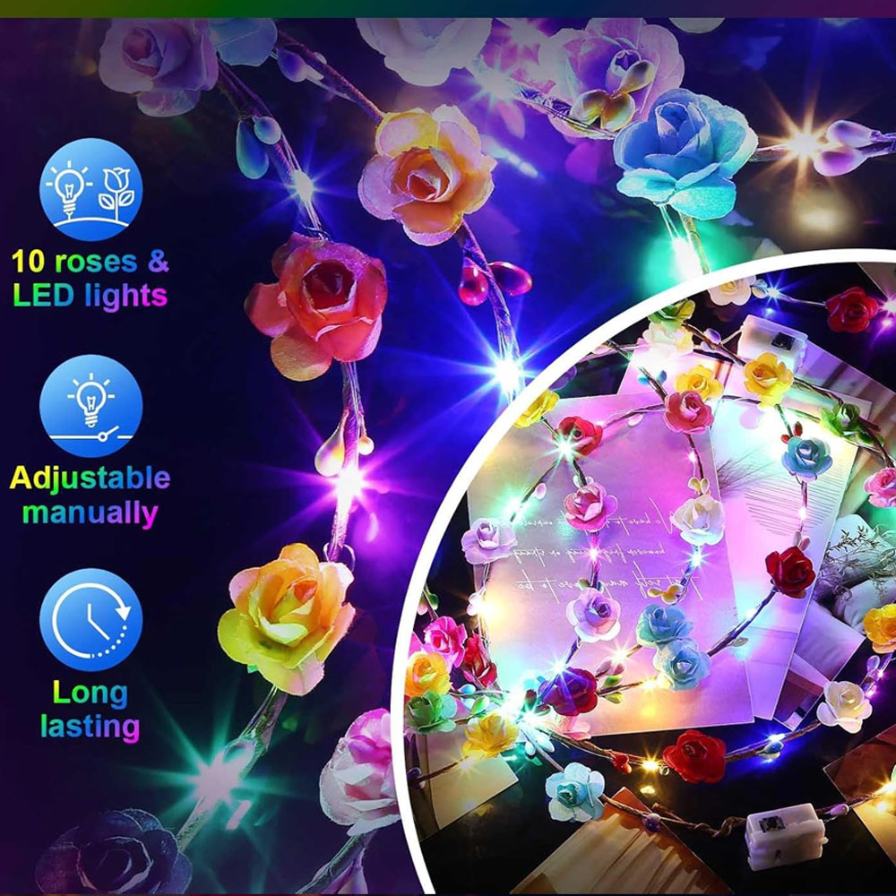 The garland is filled with vibrant colored flowers and stamens, featuring 10 paper flowers and 10 colored lights. Depending on the production batch, the color of the colored paper flowers may differ from that in the picture.